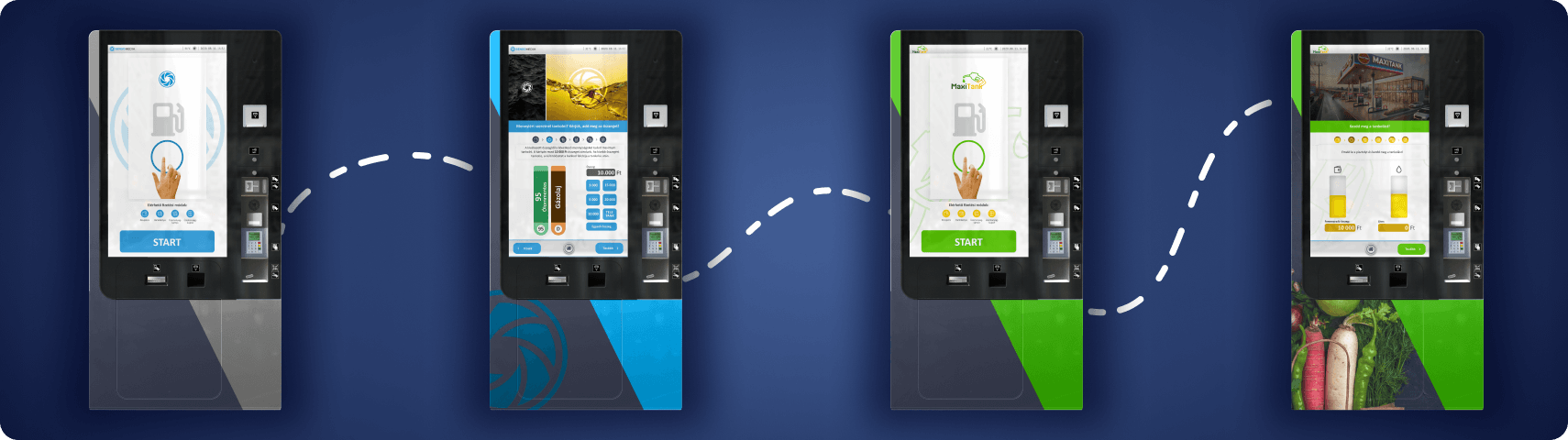 Egyedülálló, nagyképernyős fizetőautomaták.